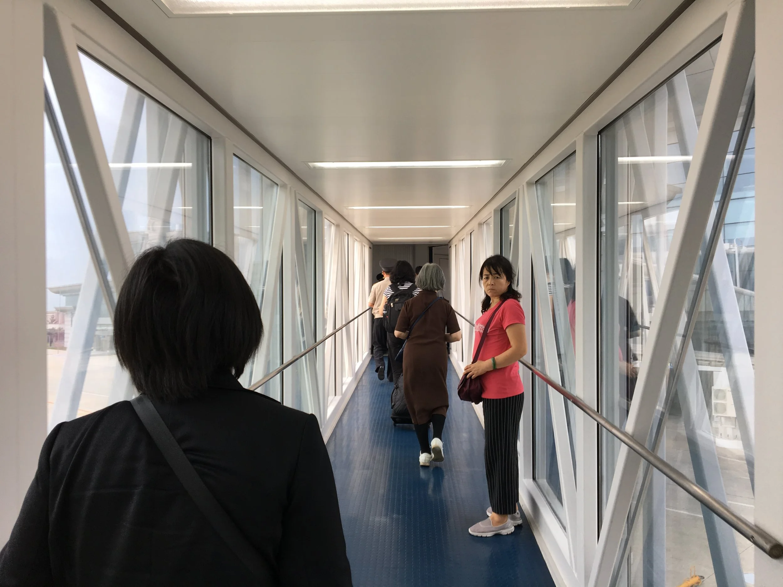 Confused Chinese tourists at Pyongyang Sunan International Airport