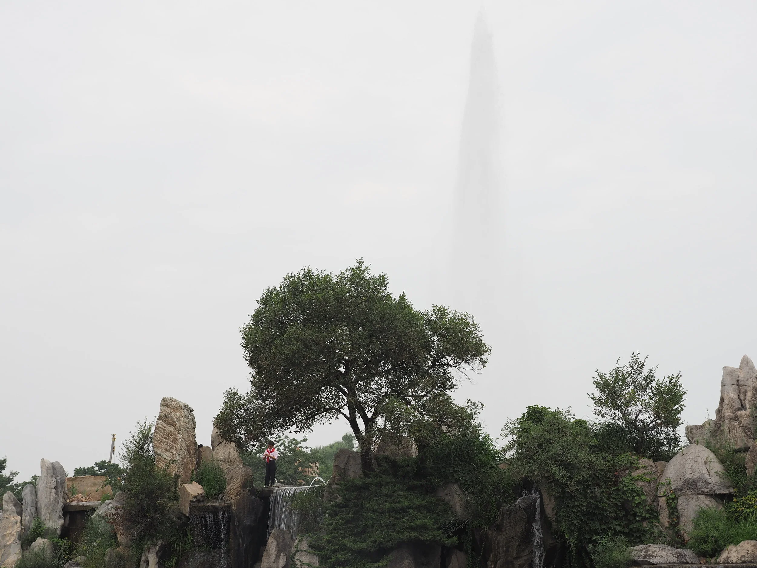 I'm pretty sure these people aren't actors. I could be wrong, but it seems like people still lead a normal life. Couples hang out at the park after work. Kids playing in the park and climbing on things after school. I had one of those red Young Pioneer scarfs the little boy was wearing when I was in elementary school in China too. It's basically the precursor to joining the communist party and getting one of those pins with the great leader's face on it.