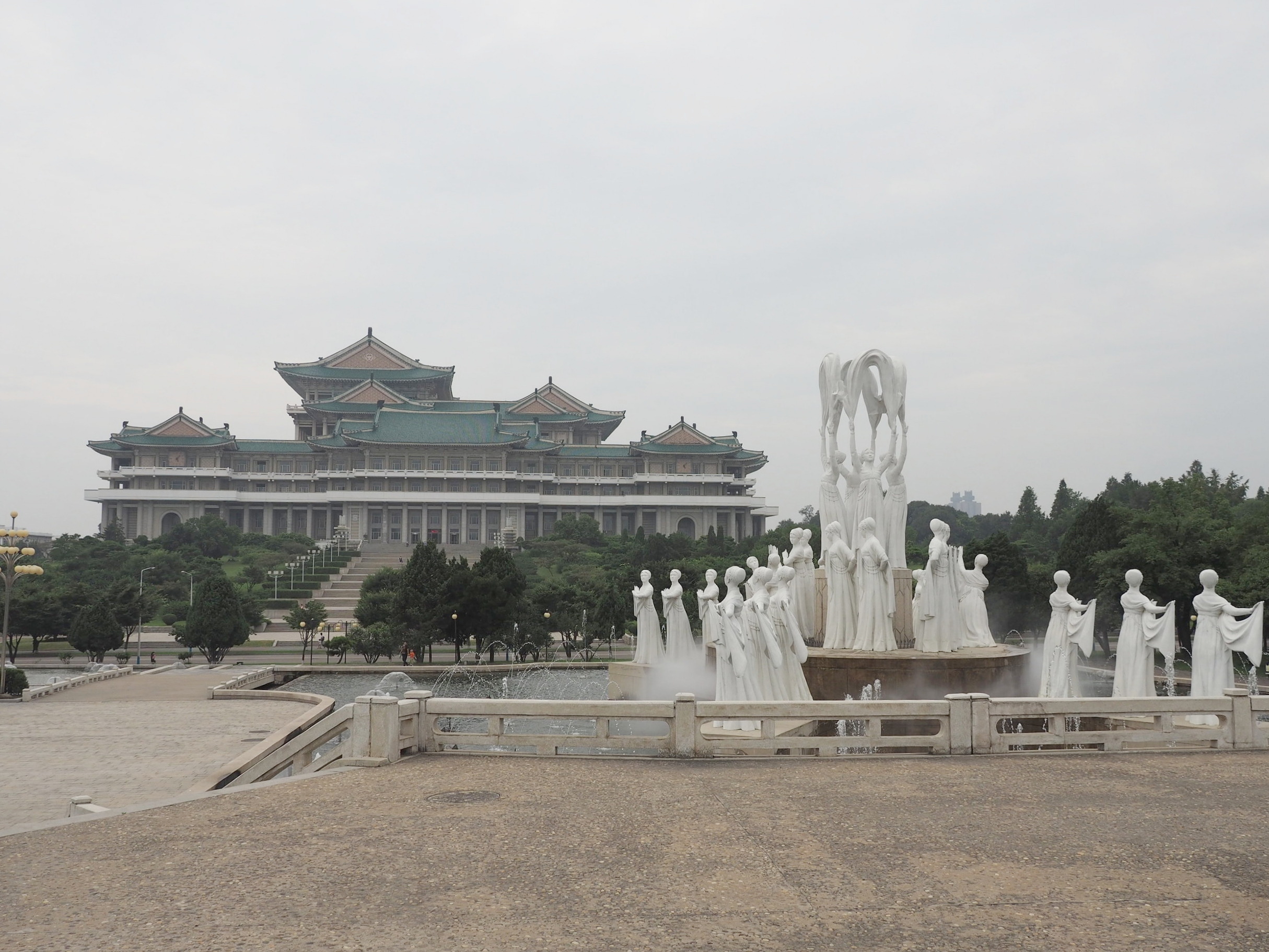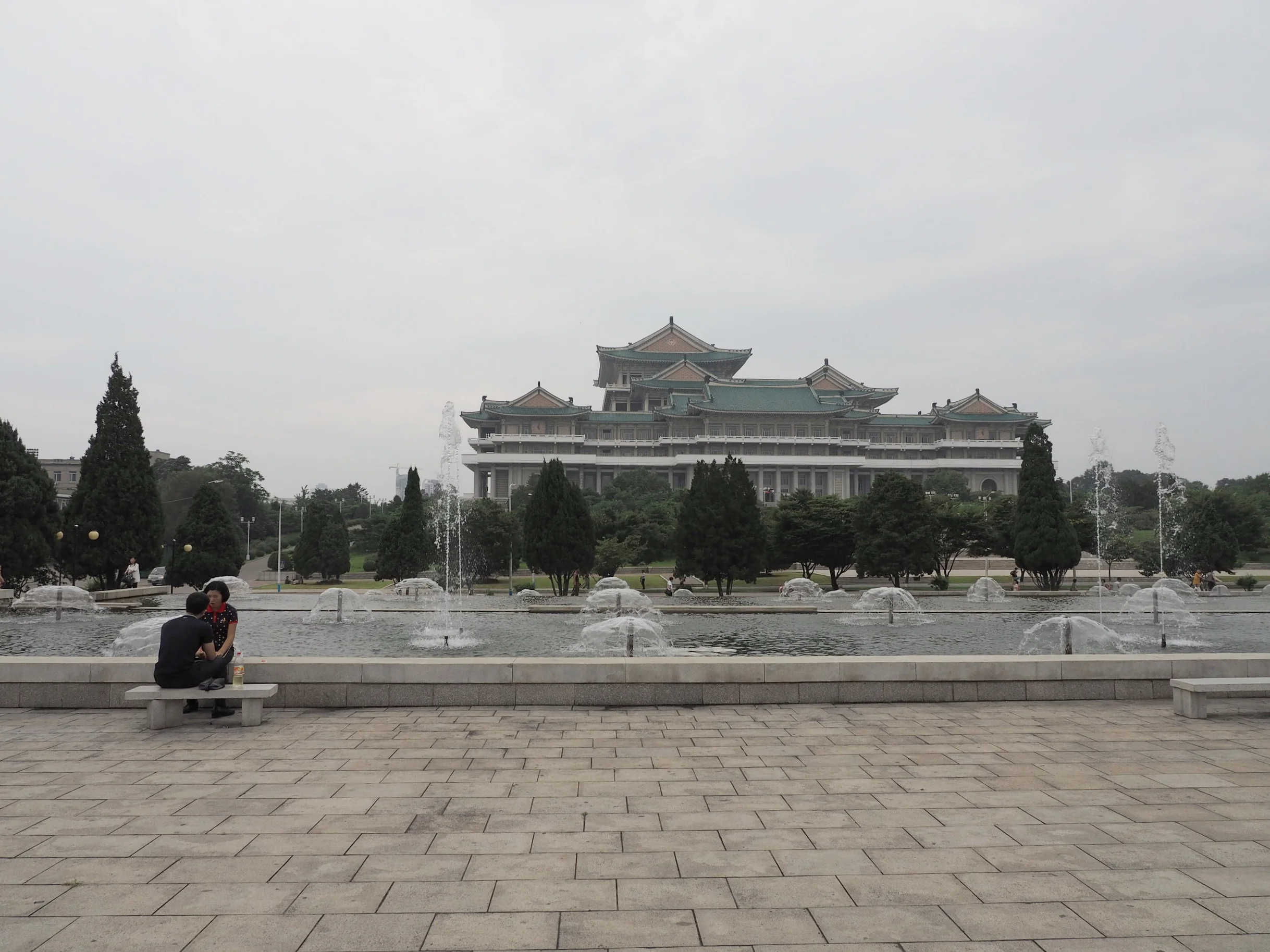 The famous fountain in Mansudae Park next to the Grand People's Study House